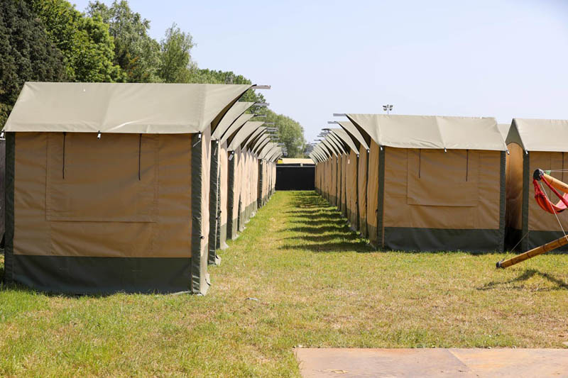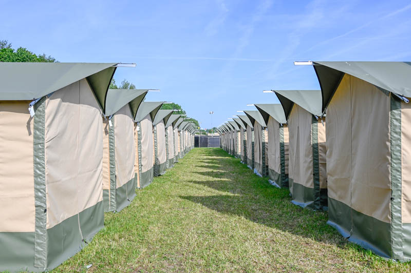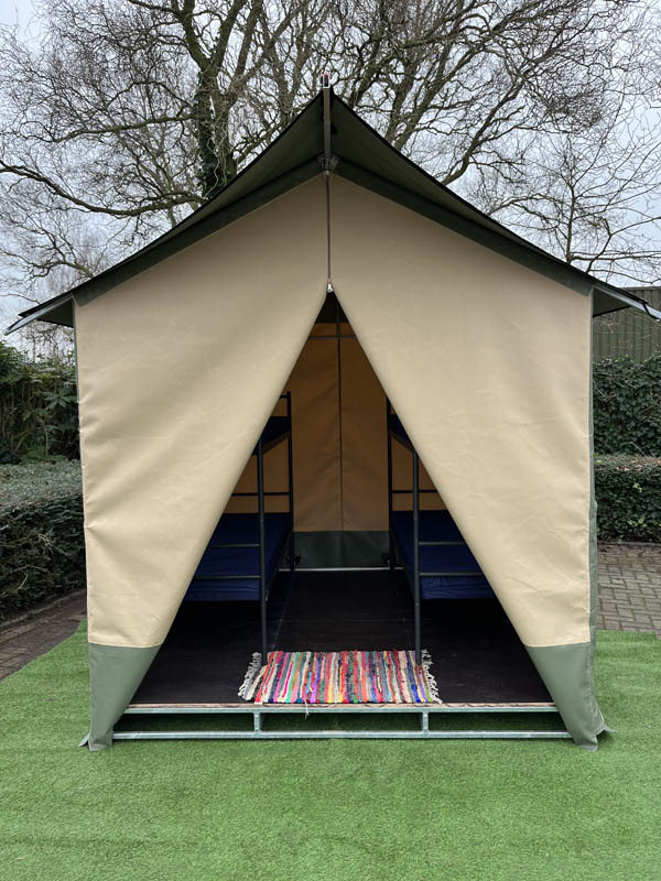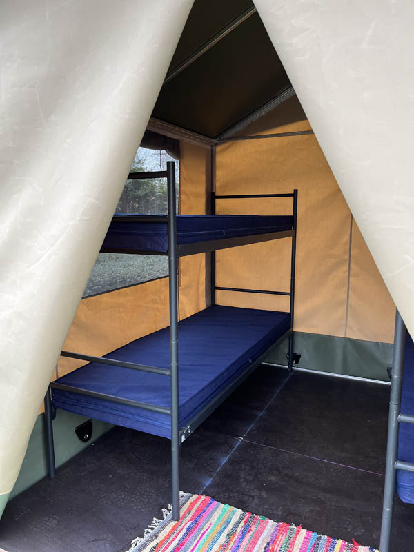 Sleeping in a kapihut tent accommodation (4 persons) with stackable beds.